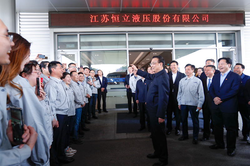 李克強(qiáng)3月25日上午考察江蘇常州恒立液壓股份有限公司。這家民營企業(yè)是中國液壓行業(yè)的標(biāo)桿企業(yè),被行業(yè)認(rèn)定為制造業(yè)“單項(xiàng)冠軍”企業(yè)??偫碜哌M(jìn)生產(chǎn)車間,詳細(xì)了解企業(yè)研發(fā)制造、市場(chǎng)份額以及開展國際合作等情況。李克強(qiáng)說,液壓系統(tǒng)對(duì)制造業(yè)十分重要,過去在這方面我國存在一些短板,現(xiàn)在你們通過合作創(chuàng)新取得一定突破。希望你們繼續(xù)堅(jiān)持合作創(chuàng)新,始終瞄準(zhǔn)全球和全行業(yè)先進(jìn)水平。正像你們企業(yè)名字“恒立”寓意的那樣:不僅要永恒立起來,而且要勇敢立在潮頭。不光有恒心,更要做成恒業(yè)。